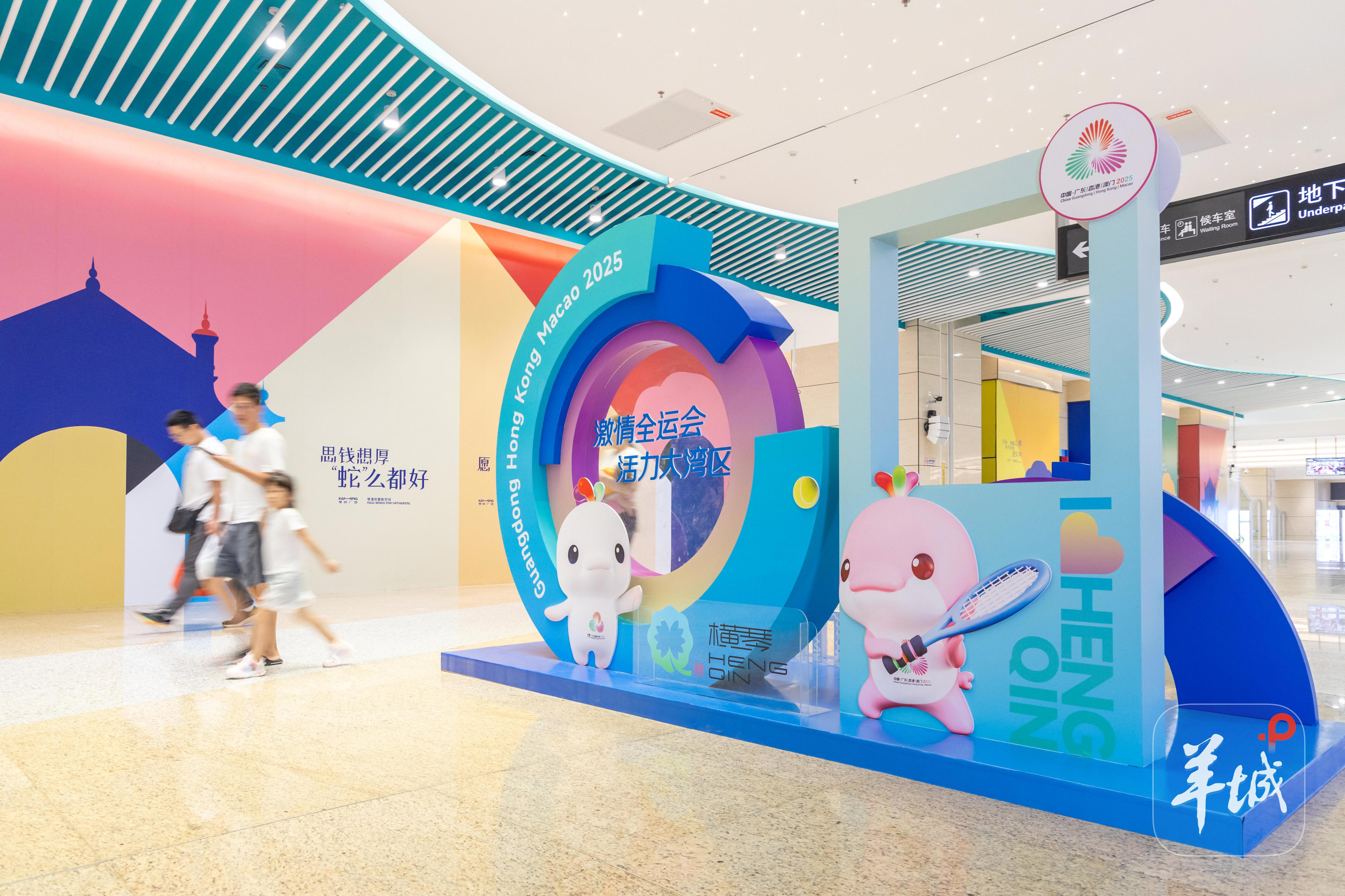 在横琴口岸、横琴码头、横琴“二线”深井通道、生态泽园等多处交通门户及户外休闲场所,十五运会主题大型装置已经布置就位,可爱的吉祥物“喜洋洋”“乐融融”欢迎路过的市民大众打卡合影,感受赛事气氛。