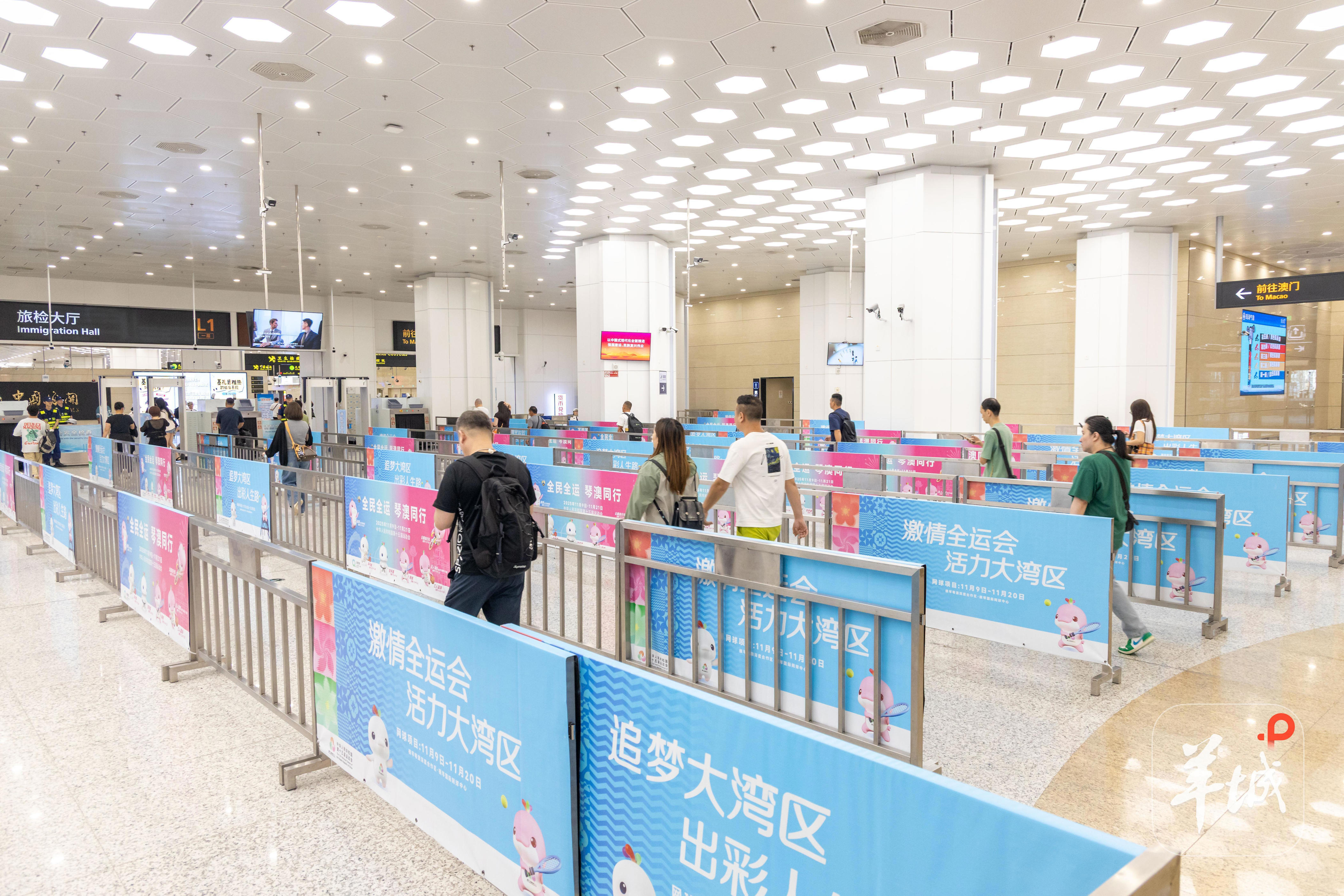 在横琴口岸,一系列十五运会主题宣传展架、广告牌及指示牌,让往来琴澳的市民游客都能更直观感受到全运会的魅力。