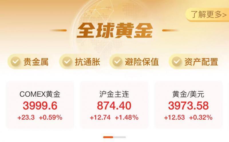 10月7日早间,COMEX黄金期货历史首次触及4000美元/盎司整数大关,日内涨幅0.55%,年内大涨逾50%。现货黄金报3976.94美元/盎司,同样创下历史新高。